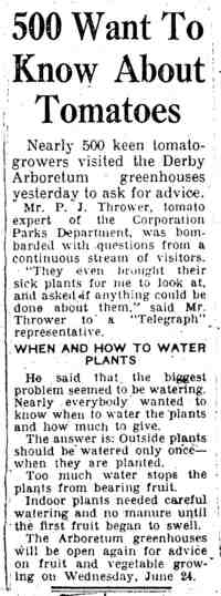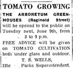 June 1942 T. S. Wells announces a tomato growing event at The Arboretum (above). |
