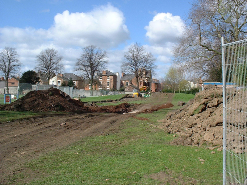 By April of 2003, work had commenced on the development of the Wildlife Garden and playground areas. Here we see the view looking towards Madeley Street, the fence to the immediate right is approximately where the caf now stands. |