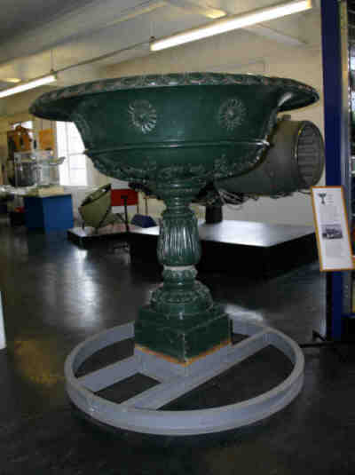 Right: The second vase, formerly believed missing, was recently taken out of storage at the Industrial Museum and restored to its place as as part of the museum's Handyside collection. It was purchased at an auction during the 1980s. (The Silk Mill World Heritage Site) Photo Christopher Harris, March 2006 Courtesy of Derby Industrial Museum Ornamental Vases |