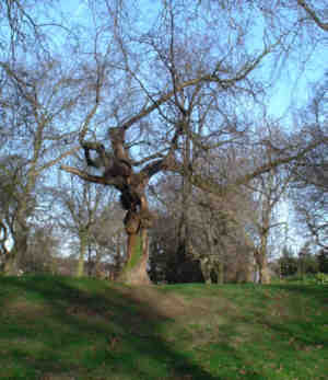 This Mulberry tree has sustained significant damage over the years, including being topped due to being crowded by a neighbouring Plane tree. In view of its age and the importance of being one of the original Loudon trees, every effort is to be made to preserve the tree and encourage new growth. |
