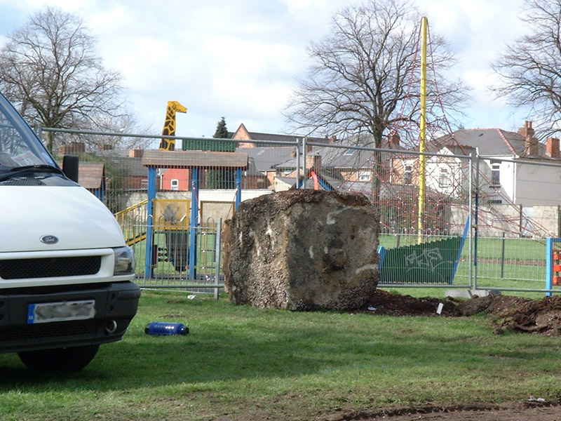 The old playground is being cleared to make way for the new equipment. This massive concrete block was the base of the old roundabout. |